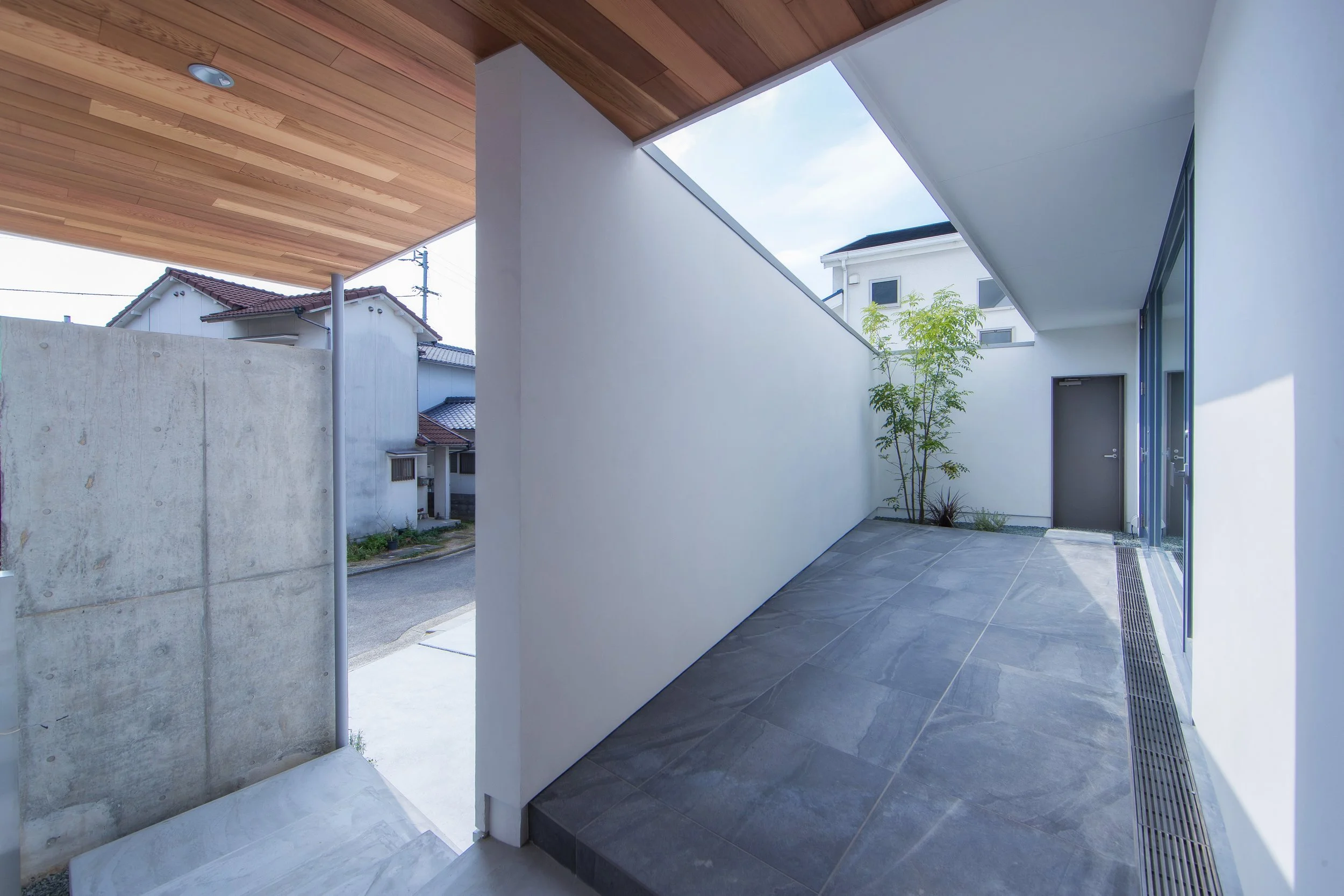 中庭とシームレスにつながるディテールにこだわったモダンなデザイン。